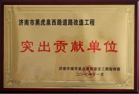 济南市黑虎泉西路道路改造工程突出贡献单位