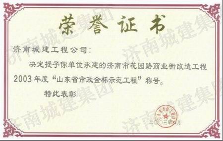济南市花园路商业街改造工程荣获2003年度山东省市政金杯示范工程