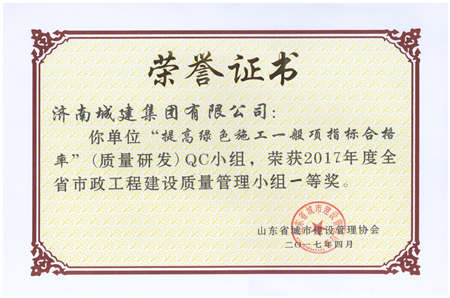 “七巧”QC小组荣获2017年度全国市政工程建设优秀质量管理小组一等奖