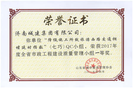 降低施工所致旅游西路交通拥堵延时指数(七巧)QC小组获2017年度全省市政工程建设质量管理小组一等奖