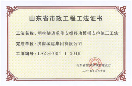 明挖隧道单侧支撑移动模板支护施工工法LSZGF004-1-2016