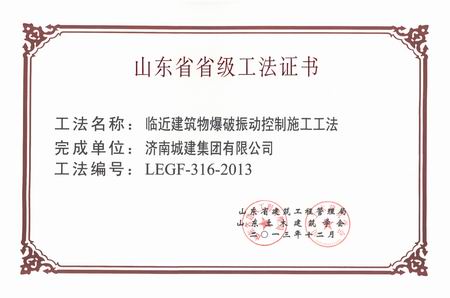 2013省级工法临近建筑物爆破振动控制施工工法
