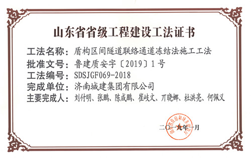 ¼¯ÍÅ¡°¶Ü¹¹Çø¼äËíµÀÁªÂçͨµÀ¶³½á·¨Ê©¹¤¹¤·¨¡±±»ÆÀΪɽ¶«Ê¡Ê¡¼¶¹¤³Ì½¨É蹤·¨