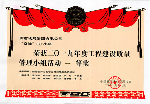 集团“奋进”QC小组荣获“2019年度工程建设质量管理小组一等奖”